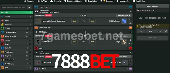 O 7888Bet oferece uma grande seleção de opções de apostas em e-sports com probabilidades competitivas